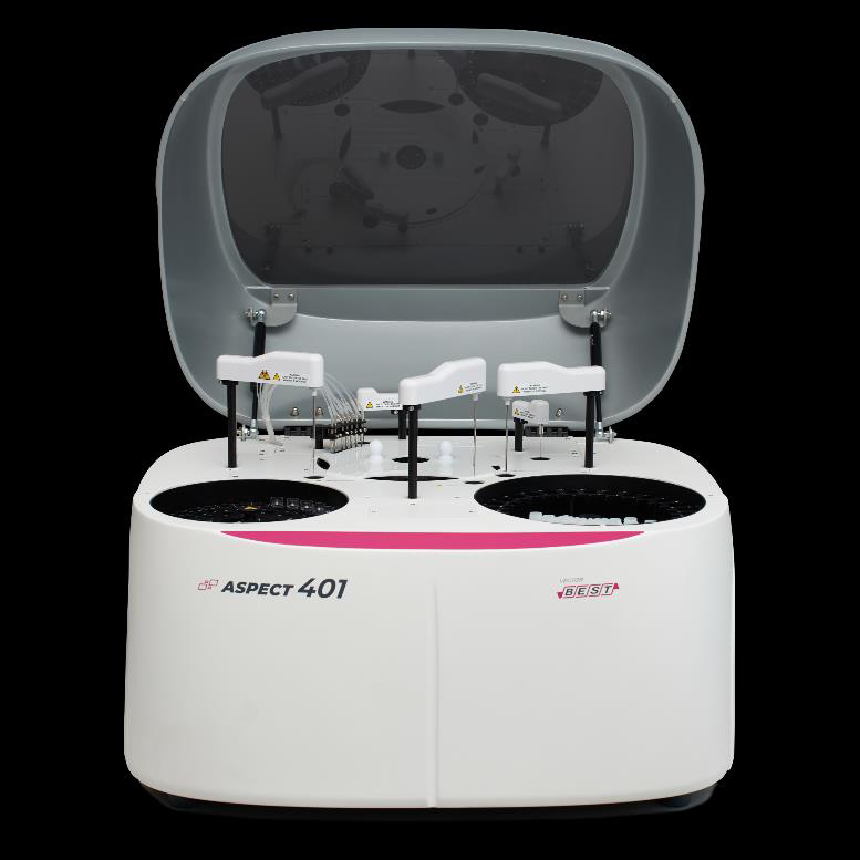 Анализаторы биохимические автоматические Aspect 401 (далее - анализаторы) предназначены для измерений молярной концентрации мочевины, холестерина, креатинина, общего кальция (Ca) и общего магния (Mg), а также ионов калия (K+) и хлорид-ионов (Cl-) в с...
