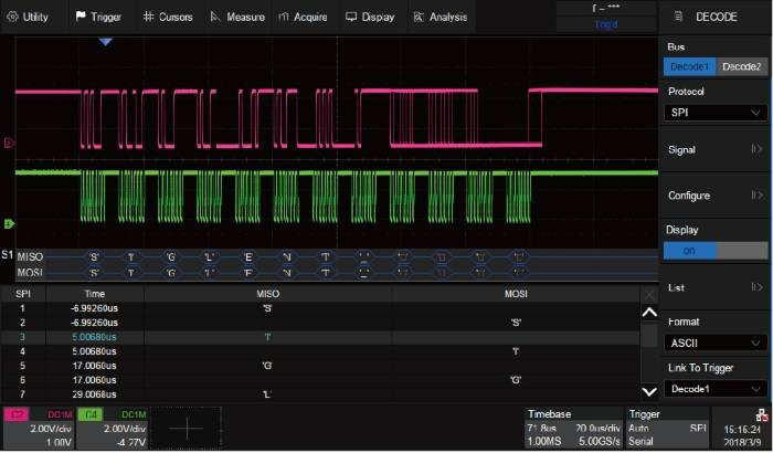 В базовой версии имеется возможность декодирования протоколов I2C, SPI, UART/RS232, CAN, LIN.