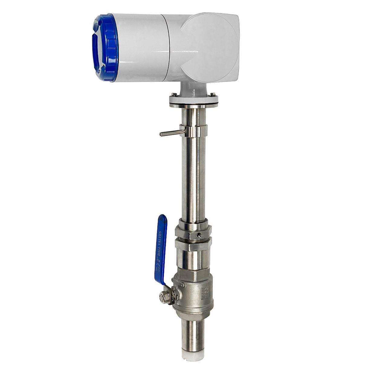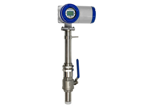 Затем фреза отсоединяется, и к шаровому крану прикручивается шток расходомера MagFlow 3600. Открывается шаровой кран, и через него шток расходомера погружается в трубопровод на глубину согласно руководству по эксплуатации. После этого проверяется корректность ориентации прибора (метка на корпусе параллельно потоку) и фиксируется в правильном положении контр-гайкой.