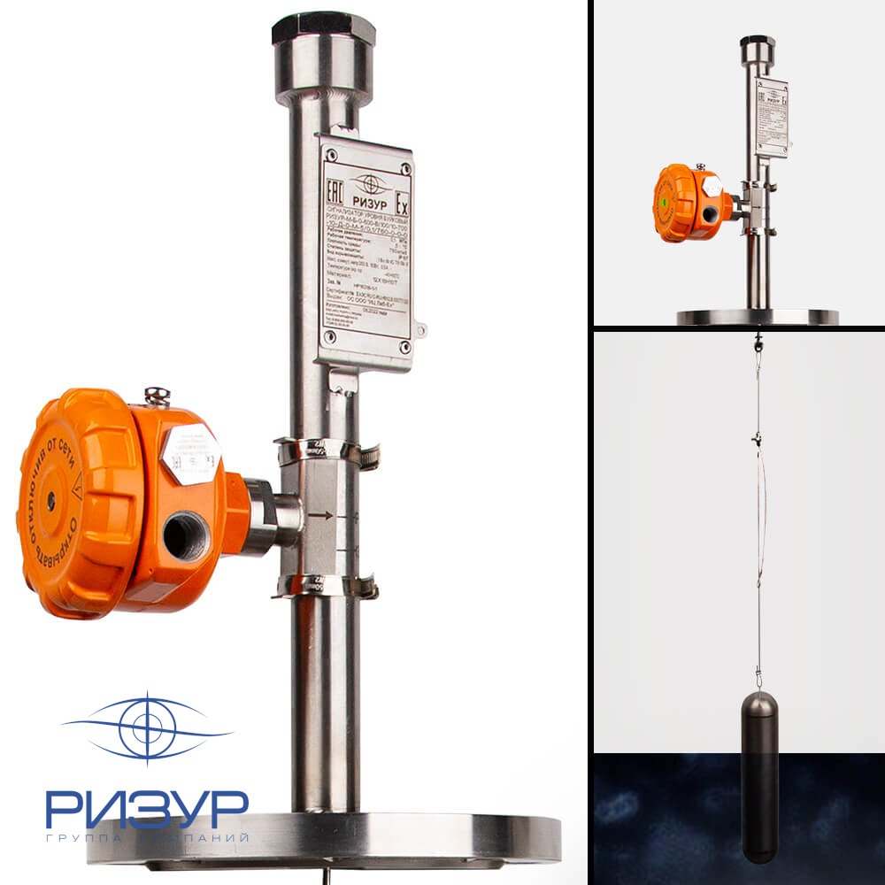 Понтонный сигнализатор уровня РИЗУР-М-П производства ООО «НПО РИЗУР» предназначен для контроля верхнего уровня нефтепродуктов в резервуарах с плавающим понтоном. Буйковый сигнализатор уровня РИЗУР-М-Б предназначен для контроля верхнего уровня нефтепродуктов в резервуарах без понтона. РИЗУР-М-Б может устанавливаться непосредственно на резервуар или использоваться с уровнемерной байпасной колонкой РИЗУР-КБУ.
