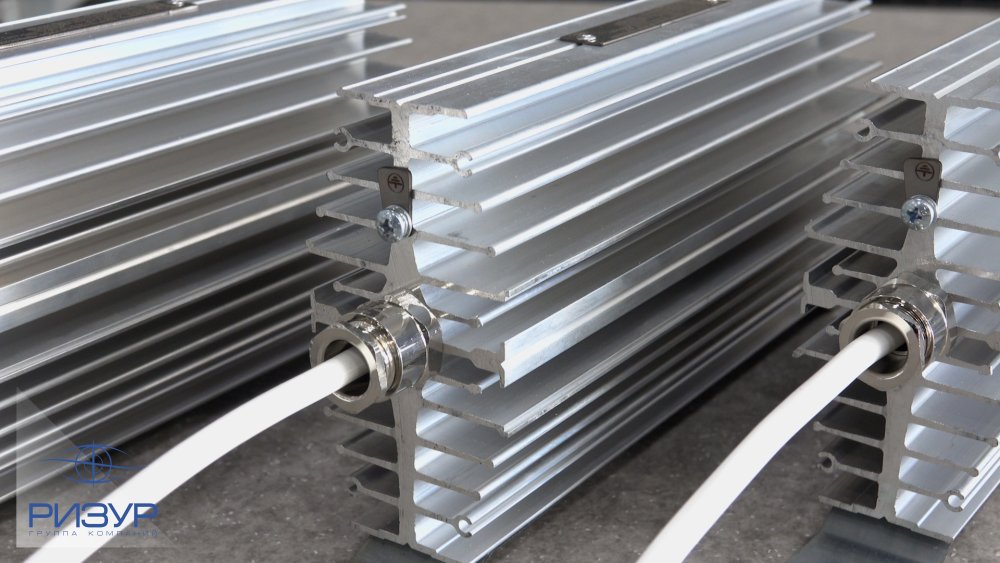 Конструктивно обогреватель выполнен в виде профильного радиатора из алюминиевого сплава. Специально спроектированная и разработанная форма профиля обеспечивает наилучшую теплоотдачу. Внутри радиатора располагается керамический электронагревательный элемент на базе полупроводниковых керамических нагревательных элементах (РТС-керамики), которые обладают "чувствительностью" к температуре. Электрическое сопротивление находится в нелинейной зависимости от температуры нагрева - при повышении температуры сопротивление керамического нагревательного элемента многократно возрастает, ограничивает протекающий ток и останавливает рост температуры. Благодаря свойству саморегулирования керамических нагревательных элементов, обогреватели РИЗУР-ТЕРМ на базе РТС-керамики не требуют применения стабилизирующих компонентов и средств защиты от перегрева поверхности, что положительно сказывается на безотказности и долгосрочности работы обогревателя.