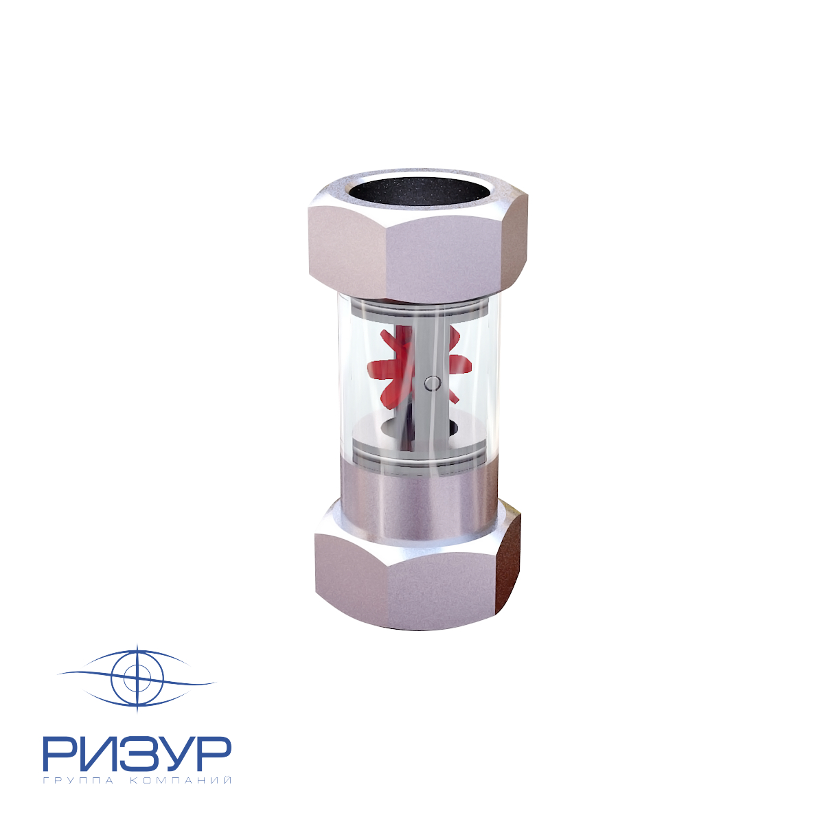 Данный индикатор (смотровое стекло) имеет цилиндрический корпус, оборудованный смотровым окном, через которое осуществляется наблюдение за потоком. При исследовании сред и составов, для улучшения видимости потока, приборы серии РИЗУР-ВИП-5 оснащается дополнительной опцией— крыльчаткой (ротором). Когда исследуемая среда проходит через поток, крыльчатка начинает вращаться. Благодаря чему возможно распознать потоки малой скорости и увидеть движение контролируемой среды на расстоянии.