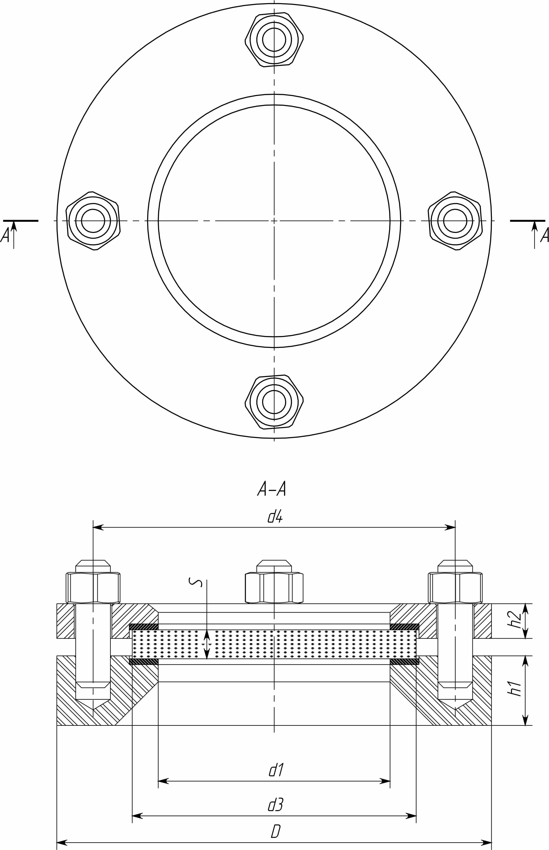 | D | d1 | d3 | d4 | S | h1 | h2 | Номи- нальный диаметр болтов или шпилек, кол-во (шт) |