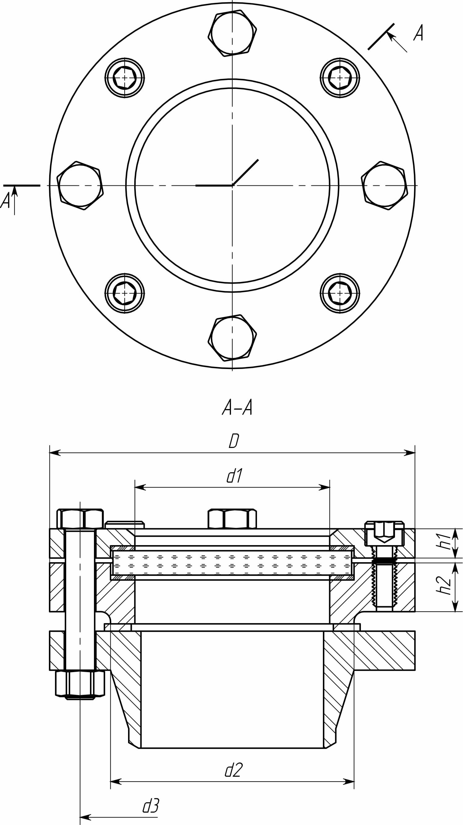 | DN | h, мм | D, мм | d1, мм | d2, мм | d3, мм | Номи- нальный диаметр болтов, кол-во (шт) |