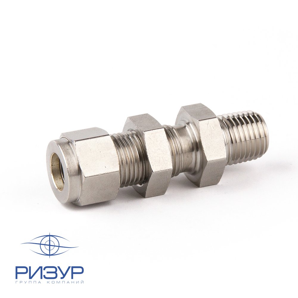 Штуцер прямой с наружной резьбой и монтажной гайкой RizurLok-PG-OPm - обжимной фитинг с переходом на наружную резьбу, предназначенный для подключения отрезков труб к приборам и оборудованию с внутренней резьбой.