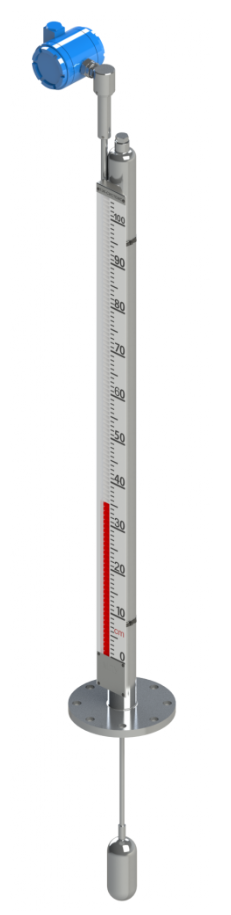Поплавок имеет шток (длина штока зависит от глубины погружения и диапазона измерения), на противоположном конце которого установлен магнит. При перемещении поплавка в резервуаре происходит перемещение магнита в камере указателя уровня и соответствующее воздействие магнитного поля на систему индикации. Для защиты поплавка и штанги от деформации (при наливе и сильном волнении жидкости) рекомендуется применять волнозащитную трубу.
