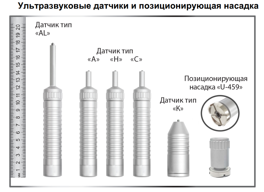 - Сменные датчики различной конструкции для выполнения специализированных задач.