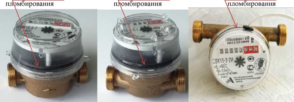 Пломбировка счетчика обеспечена неразъемным соединением крышки с корпусом (рис.2,3,5,6,7,8,9), знаком поверки (пломбировкой) (рис.1, 4).