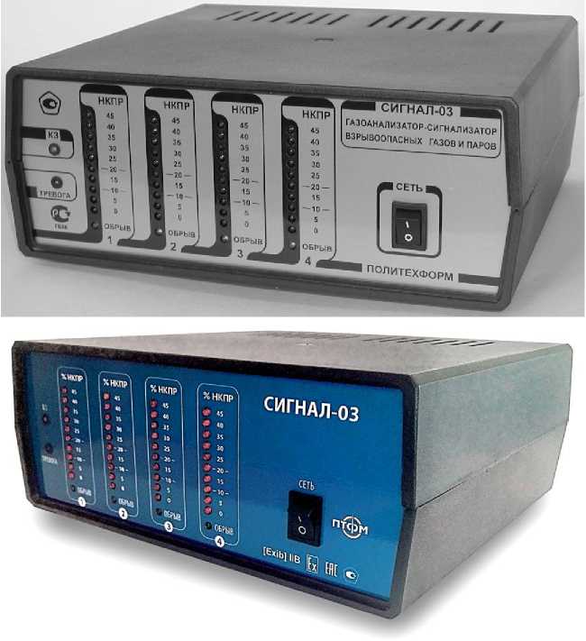 - сигнал-03. ИК, Д-ИКФ - для измерения довзрывных концентраций углеводородов в воздухе и в инертной атмосфере;