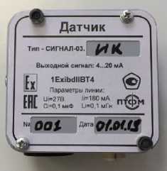 Маркировка взрывозащиты: - Сигнал-03.БИ - Сигнал-03. ДМ, ДП, ДБ, ДА, ДБФ, Д-ИК, Д-ИКФ - Сигнал-03. ДА1, ДА2, ДОУ, ДК |