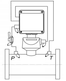 В составе корректора преобразователь температуры, установленный в потоке газа, вырабатывает сигнал, пропорциональный текущему значению температуры газа, а преобразователь давления - сигнал, пропорциональный абсолютному (избыточному) давлению газа.
