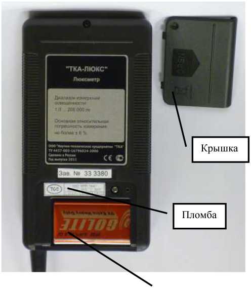 Общий вид люксметра приведен на рисунке 1. Люксметр опломбирован невосстанав-ливаемой наклейкой. Схема пломбировки приведена на рисунке 2.