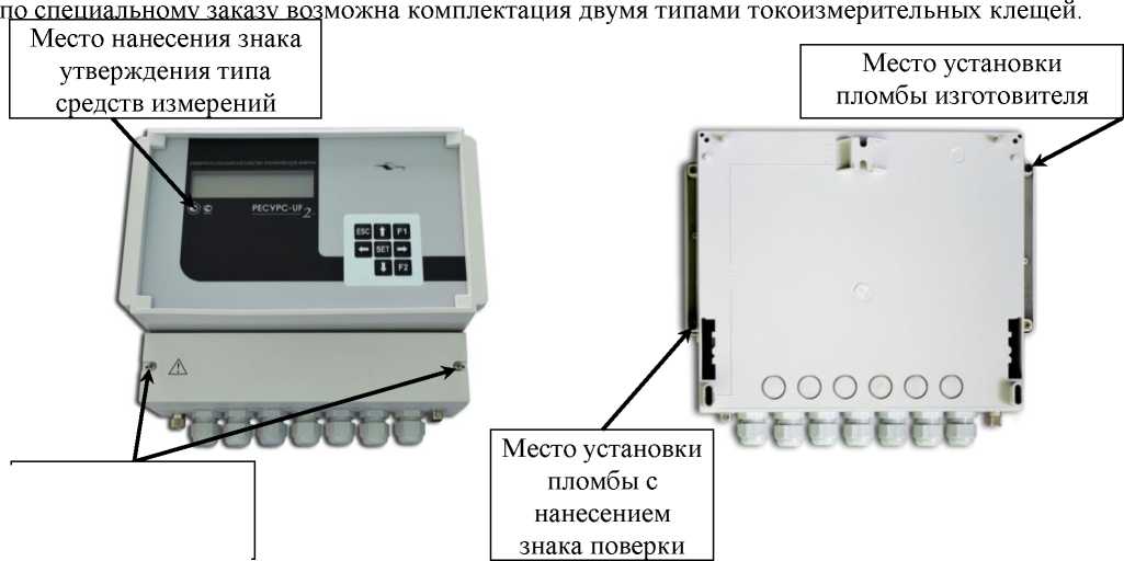 «Pecypc-UF2MB») пломба изготовителя и пломба с нанесением знака поверки устанавливаются по диагонали на верхней крышке приборов под заглушками.
