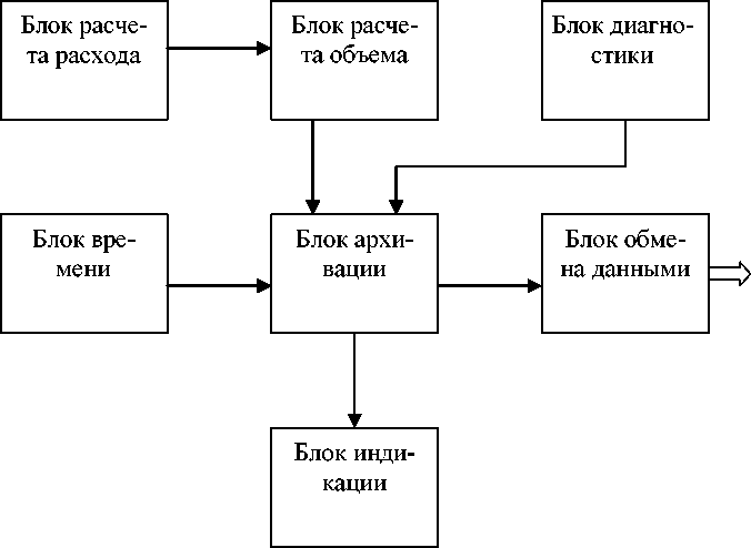 6) Блок реального времени предназначен для измерения времени работы счетчика-расходомера и времени действия диагностируемых ситуаций;