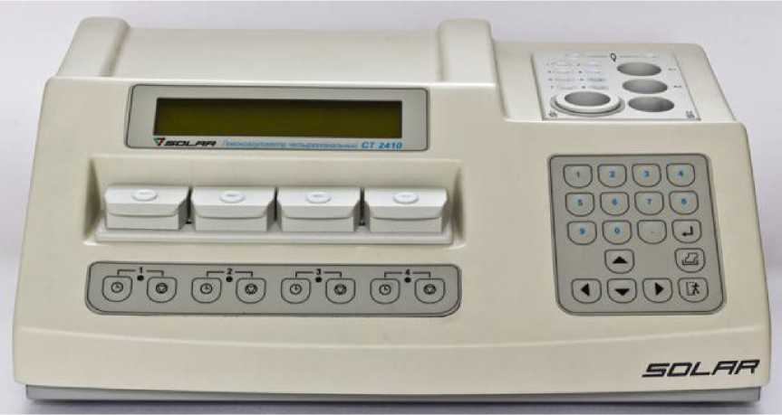 Гемокоагулометры четырехканальные «СТ 2410» (далее - гемокоагулометры) предназначены для определения времени свертывания плазмы крови турбидиметрическим методом путем непрерывного контроля изменений светопропускания, происходящих в перемешиваемом и термостатируемом растворе, с выводом результатов измерения на встроенный индикатор, внешний принтер и компьютер класса IBM PC.