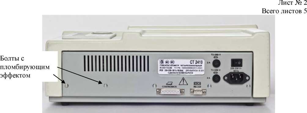 Схемы маркировки и пломбировки гемокоагулометра представлены на рисунках 2 и 3.