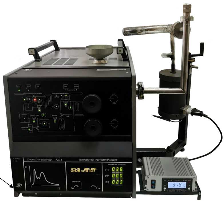 Анализатор водорода АВ-1, модификация «АВ-1» в составе: - система вакуумная (СВ) - устройство регистрирующее - экстракционно-загрузочный узел с регулятором температуры (ЭЗУ) - блок СЦР |