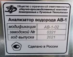 ТУ 26.51-002-27480175-2021. Анализаторы водорода АВ-1, модификации «АВ-1», «АВ-1-01», «АВ-1-02». Технические условия.