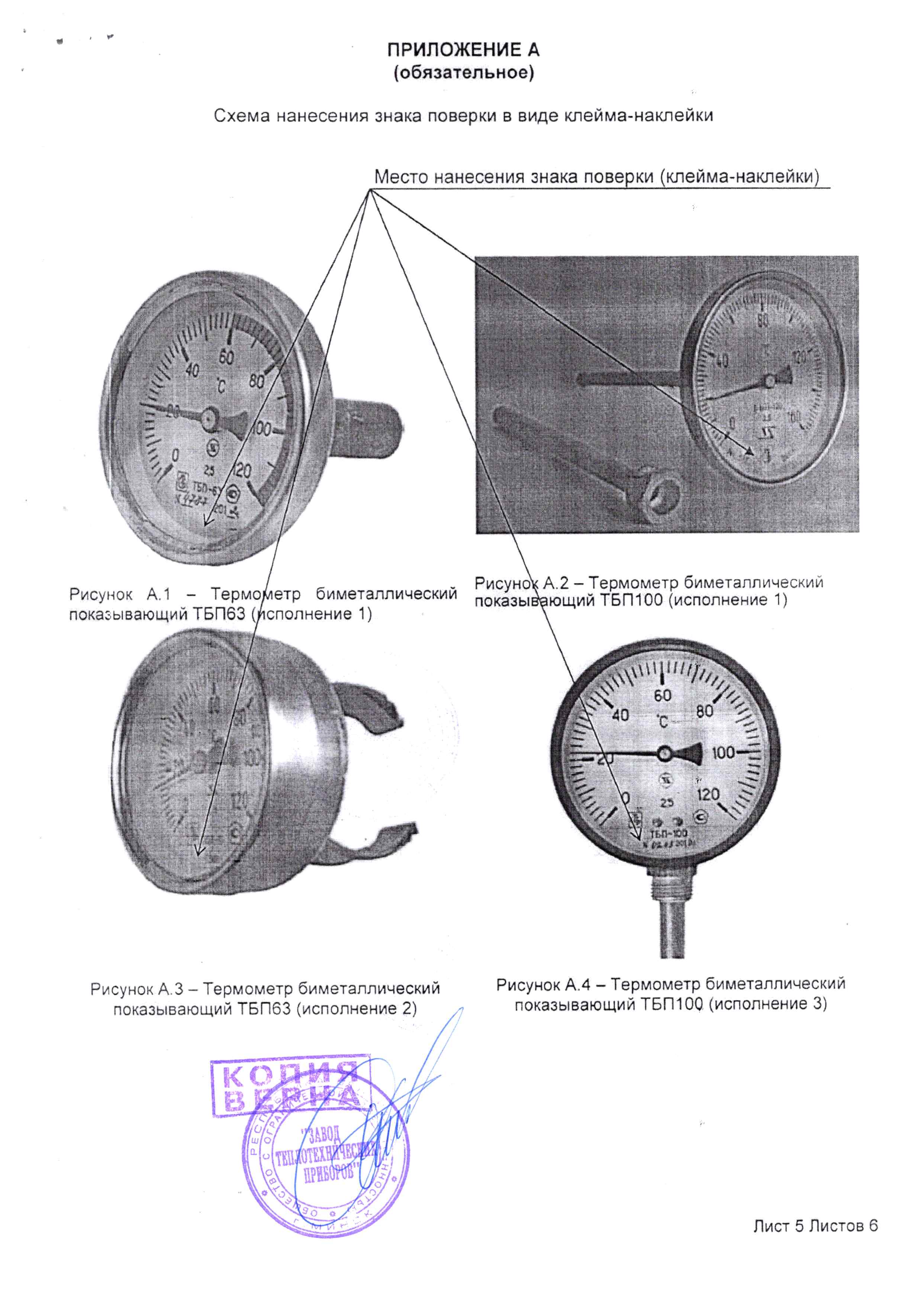 Место нанесения знака поверки в виде клейма-наклейки указано в приложении А.