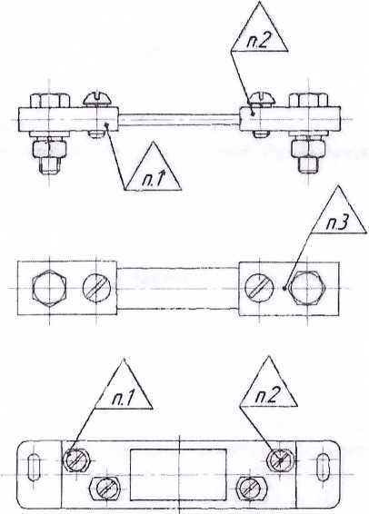 1. Клеймо ОТК (для шунтов до 20 А - место клеймения заполняется мастикой, свыше 100 А - краска штемпельная)