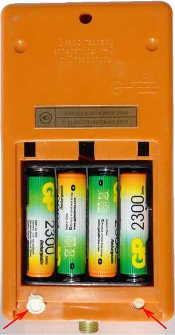 Фото 2 - Общий вид с тыльной стороны со снятой крышкой батарейного отсека, с указанием мест пломбирования.