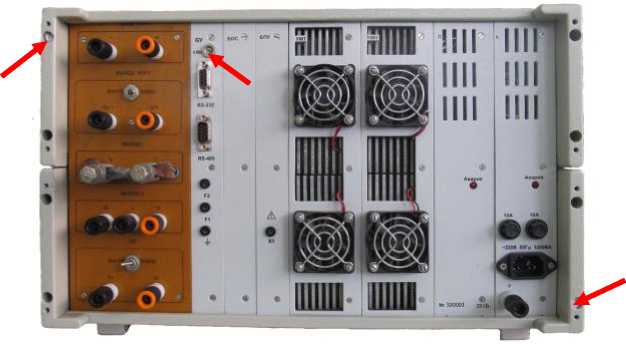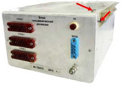 Места пломбирования источника питания показаны стрелками на рисунке 3, места пломбирования блока гальванической развязки - стрелками на рисунке 4, место пломбирования пульта - стрелками на рисунке 5.