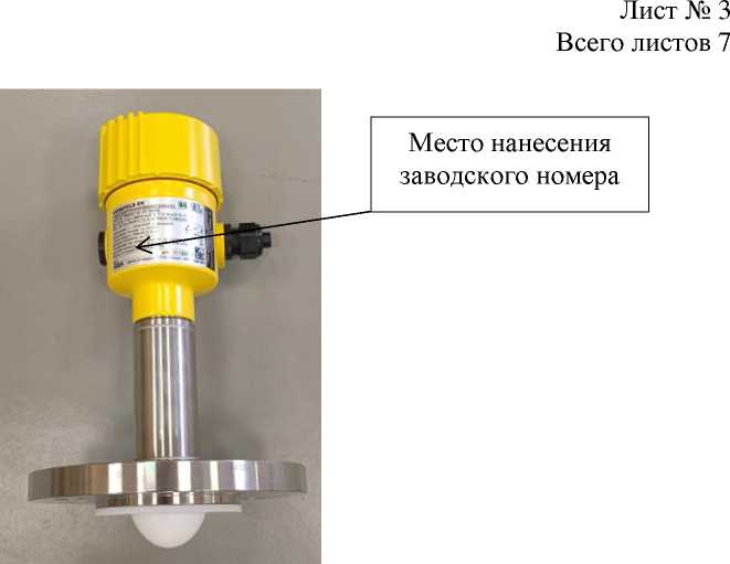 Условное обозначение и заводской номер уровнемеров в буквенно-цифровом формате наносятся на информационную табличку, закрепленную на корпусе электронного блока, способами печати и лазерной гравировки. Нанесение знака поверки на уровнемеры не предусмотрено.