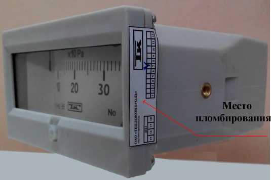 Рисунок 1 - Общий вид тягомеров, напоромеров, тягонапоромеров мембранных показывающих ТмМП-52-М2, НМП-52-М2, ТНМП-52М2 c местом пломбирования