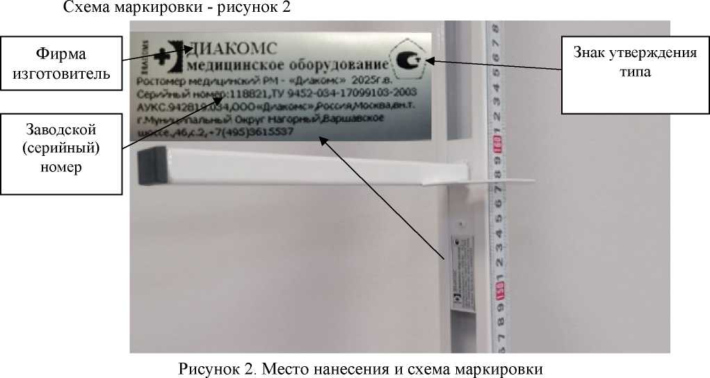 Знак поверки наносится в руководство по эксплуатации и/или в свидетельство о поверке. Каждый экземпляр ростомеров идентифицирован, имеет заводской (серийный) номер в числовом формате, указанный типографским способом на маркировочной табличке, расположенной на ползуне. При этом, обеспечивается его прочтение и сохранность в процессе эксплуатации.