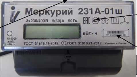 где Меркурий - торговая марка счётчика; 231 - серия счётчика;