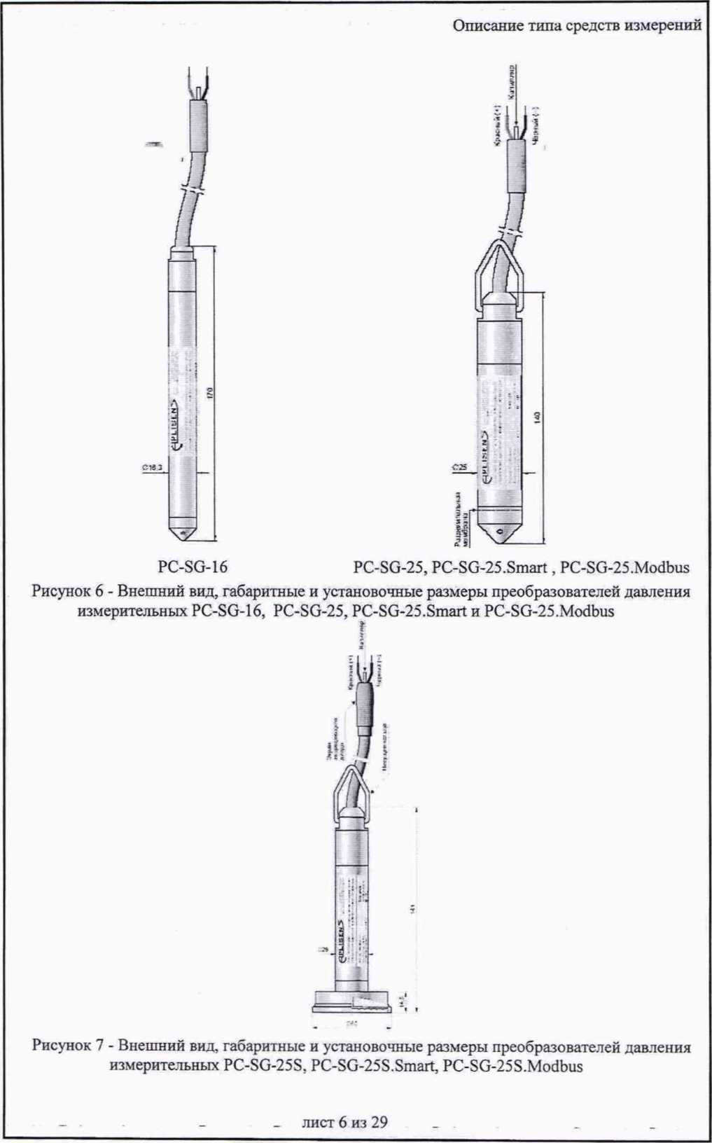 Преобразователи модификаций PC-SG-25, PC-SG-16, PC-SG-25S, PC-SG-25.Smart PC-SG-25S.Smart, РС-28Р, РС-28РВ, PC-28P.Smart, PC-SP-50, PC-SG-25.Modbus, PC-SG-25S.Modbus предназначены для преобразования значения гидростатического давления жидкостей в электриче-