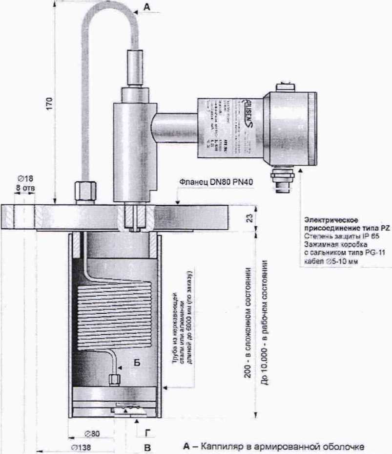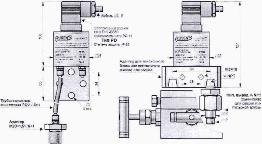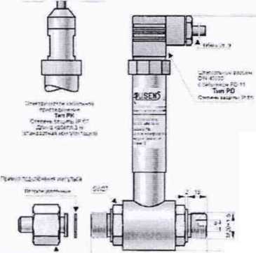 Преобразователь исполнения PD Пример со штуцерами типа Р Допустимое статическое давление 4 МПа
