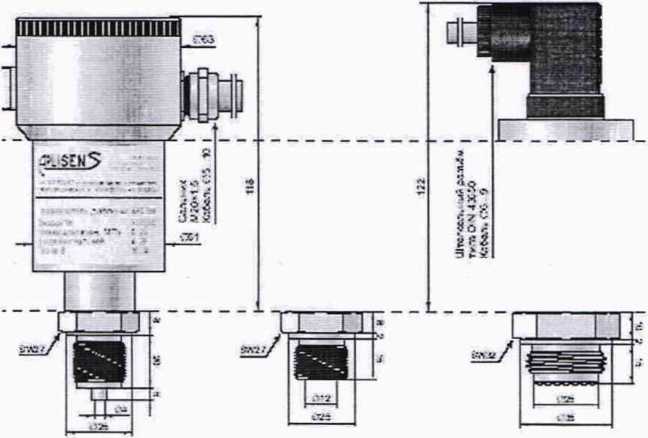 Рисунок 3 - Внешний вид, габаритные и установочные размеры преобразователей давления