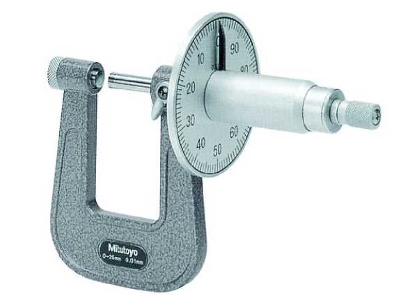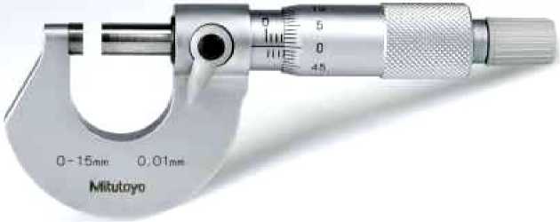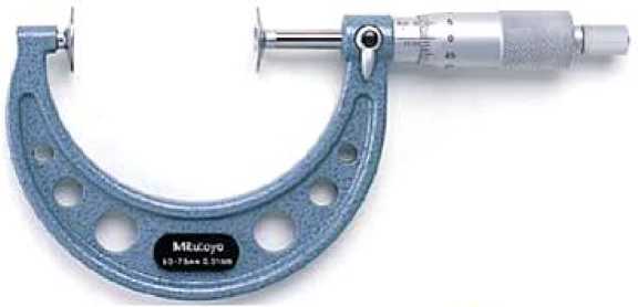 Микрометры серии 169 (рис. 15) имеют измерительные поверхности в виде дисков диаметром 20 мм с толщиной края 0,7 мм и невращающийся шпиндель, что позволяет измерять мягкие материалы, резину, картон, ткани и т д. Отклонение от плоскостности измерительных поверхностей этого типа микрометров составляет 1 мкм, отклонение от параллельности 4 мкм для моделей с диапазоном измерений до 50 мм и 6 мкм для типоразмеров свыше 50 мм.