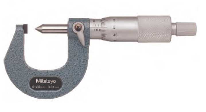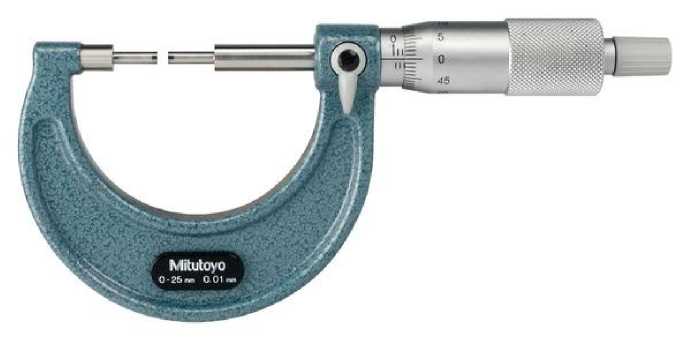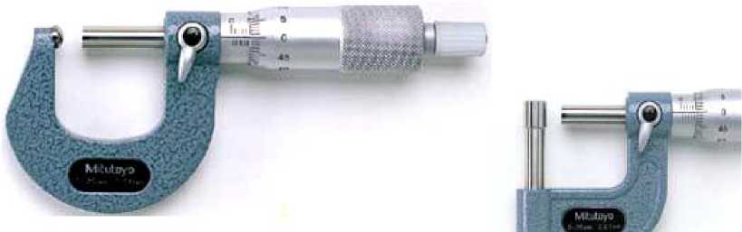 Микрометры серии 111 (рис. 7) имеют измерительные поверхности диаметром 2 и 3 мм и предназначены для измерений в канавках и пазах. Допускаемое отклонение от плоскостности измерительных поверхностей этого типа микрометров составляет 0,3 мкм, допускаемое отклонение от параллельности измерительных поверхностей составляет 3 мкм для моделей с диапазоном измерений до 100 мм, 4 мкм для типоразмеров от 100 до 200 мм и 5 мкм для типоразмеров от 200 до 300 мм.