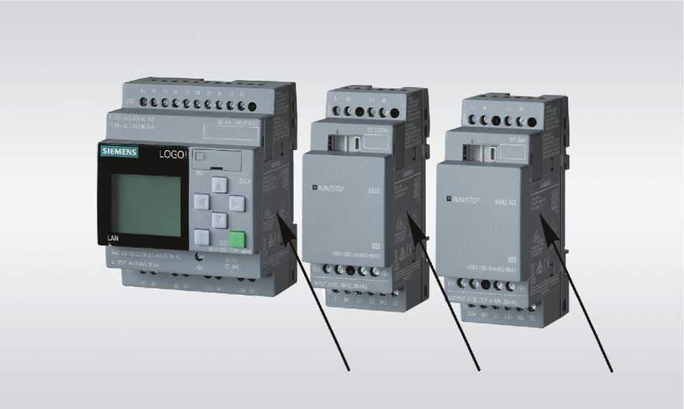 - модули ввода-вывода аналоговых сигналов AM2/AM2 PT100 и AM2 AQ, подключаются к LOGO! любых перечисленных номиналов напряжения питания и работают с сигналами в диапазонах от 0 до 10 В, от 0/4 до 20 мА, а также сигналами от термопреобразователей