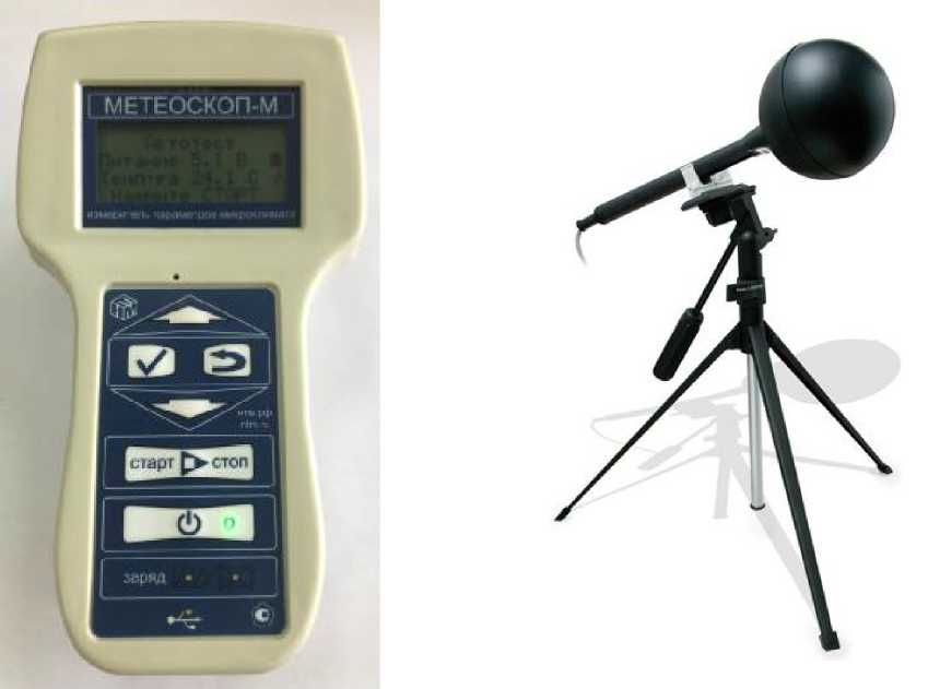 Измеритель параметров микроклимата «МЕТЕОСКОП-М» является переносным прибором и состоит из: сенсометрического щупа, шарового термометра и измерительноиндикаторного блока.