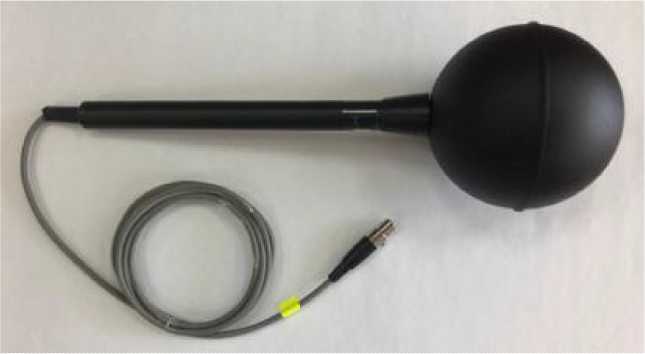 Шаровой термометр представляет собой полую сферу диаметром 90 мм с зачерненной поверхностью (степень черноты поверхности не ниже 0,95), внутри которой размещен датчик температуры.