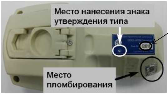 Схема пломбировки от несанкционированного доступа, место нанесения знака утверждения типа и заводского номера прибора представлены на рисунке 2.