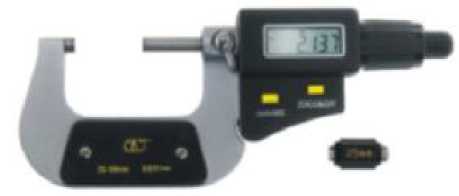 Микрометры МКЦ имеют отсчет показаний по электронному цифровому устройству, расположенному на скобе, и представляющему собой жидкокристаллический экран с кнопочным управлением, с помощью которого осуществляется ряд специальных функций, таких как, обнуление результата измерений/включение/выключение (ZERO/ON/OFF), выбор единиц измерений дюймы или миллиметры/выбор абсолютных или относительных измерений (mm/in/ABS).