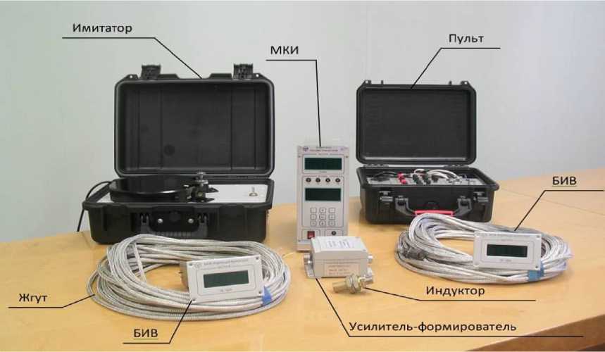 В состав комплекса тахометрического входят: модуль контроля и индикации (МКИ), блок выносной индикации (БИВ, 2 шт.), датчик частоты вращения (ДЧВ).