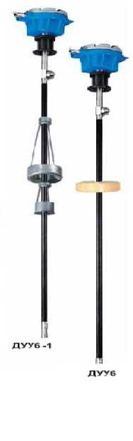 Датчики ДУУ6 выпускаются в двух исполнениях: ДУУ6 - с каналами измерений уровня светлых нефтепродуктов и ДУУ6-1 - с каналами измерений уровня светлых нефтепродуктов и уровня раздела сред (подтоварной воды). С целью уменьшения нижних не измеряемых уровней в ДУУ6-1 применены поплавки с вынесенными магнитными системами типа I диаметром130х398 и типа I диаметром 80х201.