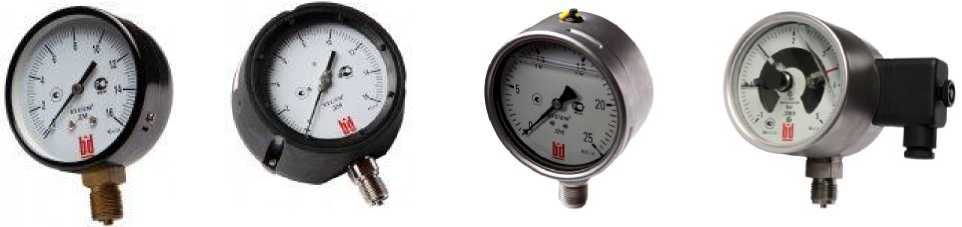Манометры выпускаются в нескольких вариантах конструктивного исполнения. Шкалы давления манометров могут быть отградуированными в кПа, МПа, кгс/см2, бар, psi и других единицах давления. По специальному заказу могут выпускаться манометры с комбинированными шкалами (на две или более единицы измерений давления), с корректором нуля на стрелке, с повышенной устойчивостью к перегрузкам избыточным давлением, с встроенным демпфером (дросселем), а также манометры кислородного исполнения.. Манометры ДМ (мод. 2...5) могут выпускаться с дополнительными температурными шкалами для аммиака или фреона. Манометры ДМ (мод. 2.7) и ДМЭ могут изготавливаться в виброзащищенном исполнении, при этом внутренний объем корпуса заполняется демпфирующей жидкостью, например глицерином или силиконовым маслом.