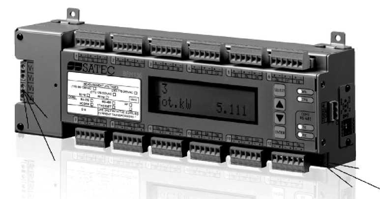 Стандартным коммуникационным портом является RS-485, протоколы Modbus RTU и Modbus ASCII. Возможны следующие типы дополнительных коммуникационных портов (опция): RS232; RS422/RS485; модем (скорость 56K); порт Ethernet (10/100BaseT); Wireless RF Modem (Zigbee, 907-922 МГц); Wireless RF Modem (Zigbee, 2.4 ГГц). Счетчик оснащен жидкокристаллическим индикатором (дисплей, имеющий 2 ряда по 16 символов, версия прибора BFM 036 - без жидкокристаллического дисплея). Встроенные часы снабжены независимым источником питания. Подключение токов производится через внешние компактные токовые трансформаторы, поставляемые вместе с прибором. Программируемая система учета электроэнергии является многотарифной.
