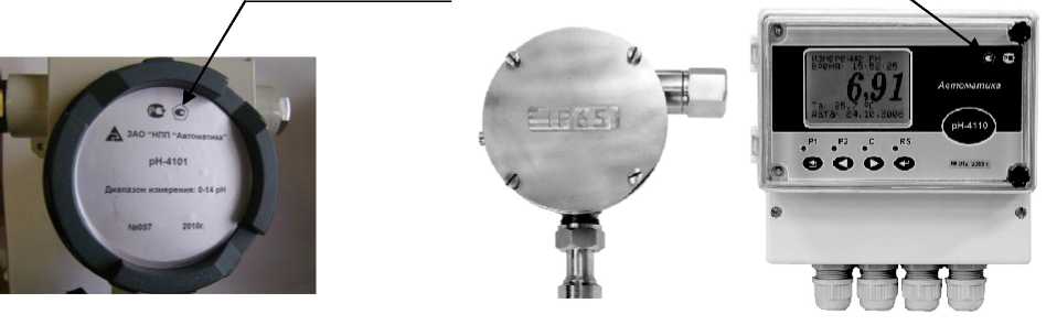 Знак утверждения типа наносится на титульный лист руководства по эксплуатации типографским способом и на корпус измерительного преобразователя рН-метра с помощью наклейки.