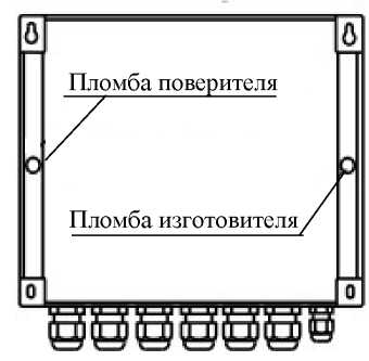 Рисунок 1 - Общий вид и схема пломбирования (вид сзади) тепловычислителей СПТ961