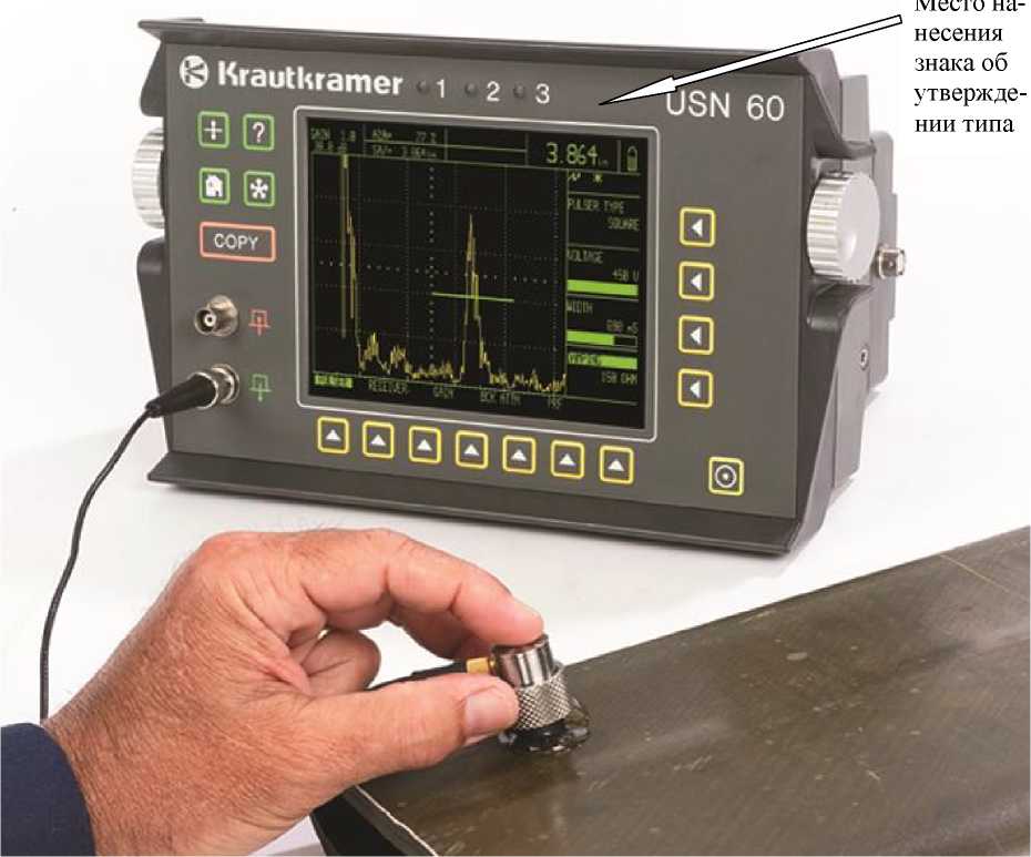 - установку требуемого значения скорости звука в материале путем введения этого значения непосредственно в прибор или по результатам его одноточечной или двухточечной калибровки по образцу известной толщины;