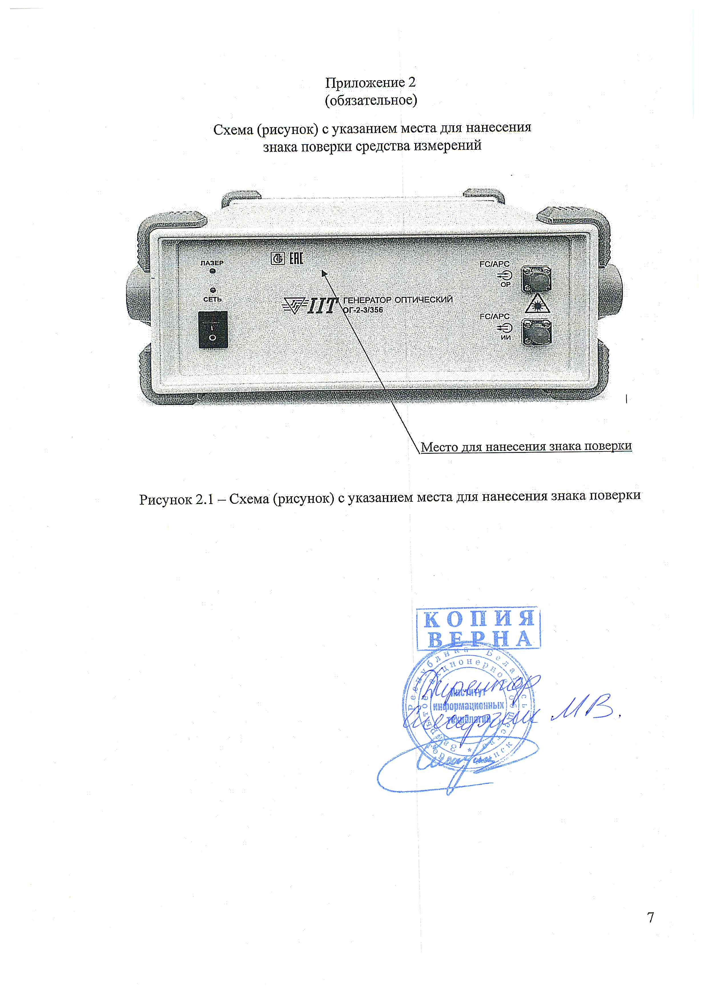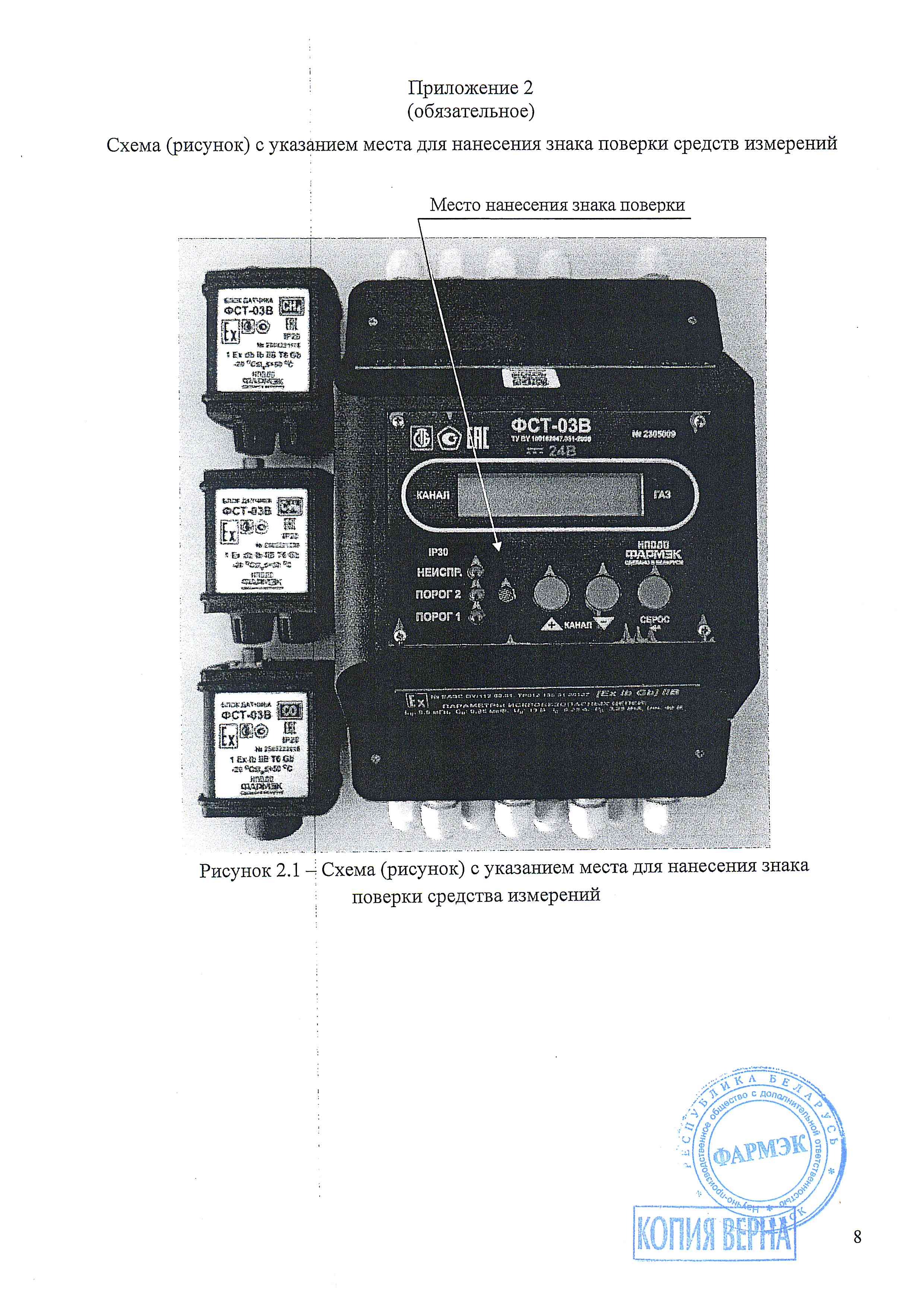 Схема (рисунок) с указанием места для нанесения знака поверки средств измерений представлена в приложении 2.