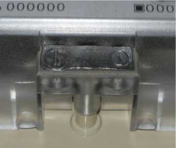 Датчик импульсов представляет собой электронное устройство с магниторезистором для формирования импульсов, в момент прохождения магнитного поля магнита, закрепленного на первичном барабане сумматора. Количество выходных сигналов датчика импульсов пропорционально объему газа, прошедшего через счетчик. После установки в счетчик, датчик импульсов пломбируется в месте подключения организацией по эксплуатации газового хозяйства. Схема пломбировки датчика импульсов представлена на рисунке 4.