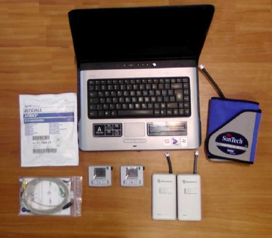 Сигнал ЭКГ поступает в регистратор по специальному кабелю. Манжета для измерения АД соединяется с регистратором с помощью эластичной трубки. Сигналы АД и ЭКГ в регистраторах преобразуются и помещаются в съемную энергонезависимую память.